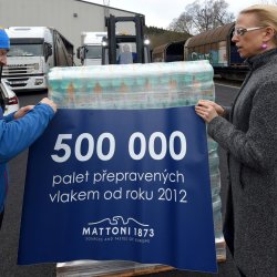 From Kyselka, Mattoni 1873 today despatched a 500 000th pallet with non-alcoholic beverages, which will go to its customers and consumers via rail. Thus, significantly hleping the environment as well as the highway system in the Czech Republic. The half-million of pallets transported by rail substitute more than 15 000 journeys of fully loaded trucks. The half-millionth pallet is headed to the Olomouc central warehouse of Kaufland.