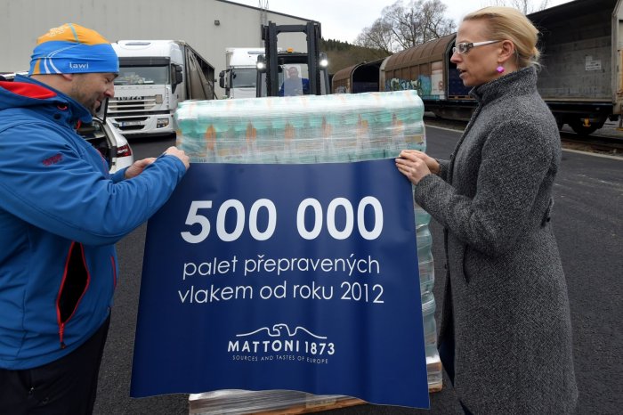 From Kyselka, Mattoni 1873 today despatched a 500 000th pallet with non-alcoholic beverages, which will go to its customers and consumers via rail. Thus, significantly hleping the environment as well as the highway system in the Czech Republic. The half-million of pallets transported by rail substitute more than 15 000 journeys of fully loaded trucks. The half-millionth pallet is headed to the Olomouc central warehouse of Kaufland.