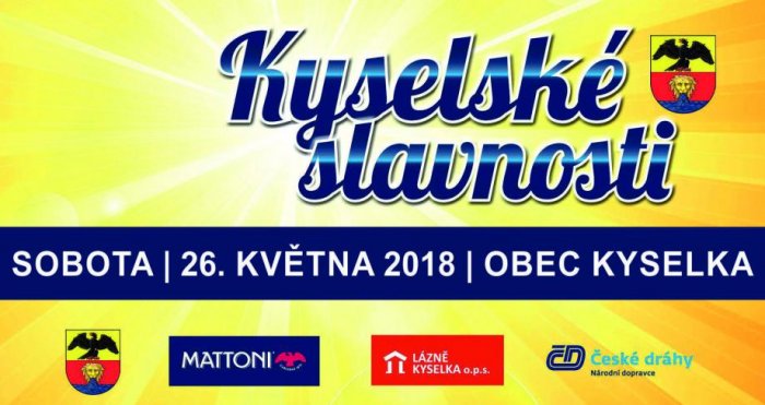 V sobotu 26. května proběhnou v obci Kyselka u Karlových Varů oblíbené Kyselské slavnosti, které tradičně nabídnou bohatý kulturní program. Návštěvníci se mohou již od 11 hodin těšit na hudební vystoupení, řadu zajímavých hostů a na velký výběr aktivit pro celou rodinu. Zájemci si během slavností mohou zapůjčit pod dohledem plavčíků lodičky na řece Ohři, prohlédnout si stánky s řemesly, zúčastnit se doprovodného programu pro děti, navštívit Mattoni Muzeum nebo se projít po zcela nové Mattoniho stezce. Milovníky cestování vlakem přiveze na Kyselské slavnosti historický motorový vlak vyjíždějící z Chomutova. Během dne je přepraví na jinak pro osobní dopravu neužívané vlečce na trase z Kyselky do Vojkovic a zpět.